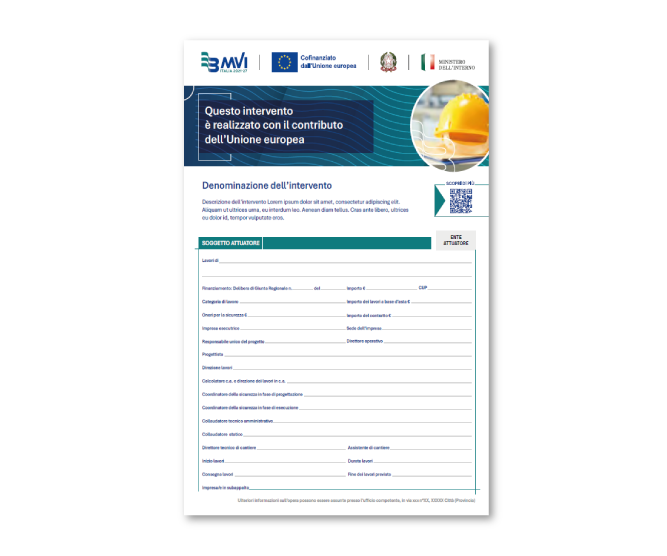 - esibire almeno un poster in formato A3 o un display elettronico equivalente, ben visibile al pubblico, per i progetti che non comportano investimenti materiali o che riguardano investimenti materiali di importo inferiore a € 100.000.