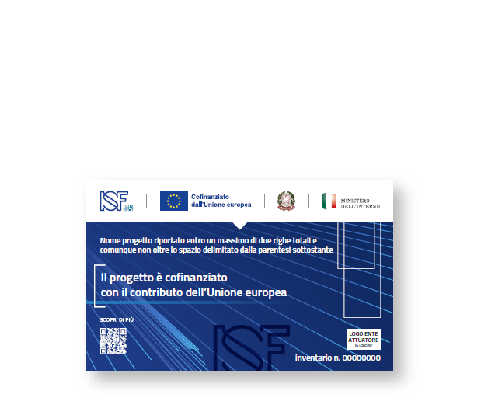 - esibire almeno un poster in formato A3 o un display elettronico equivalente, ben visibile al pubblico, per i progetti che non comportano investimenti materiali o che riguardano investimenti materiali di importo inferiore a € 100.000.